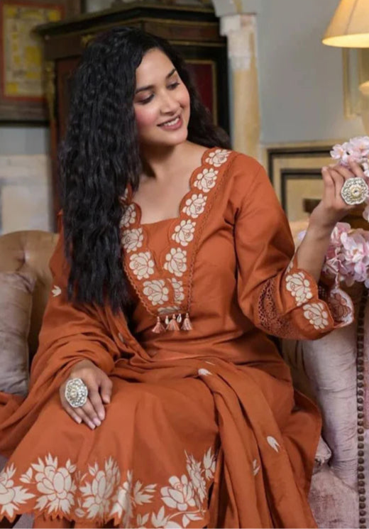 Elegant Embroidered Suit Set with Cutwork and Complete Cotton Linning